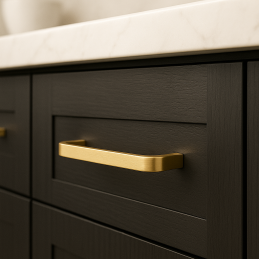 A SAMBA dizájn fogantyú fényes arany kivitelben ideális megoldás azok számára, akik modern, minimalista és időtálló kiegészítőt keresnek konyhájukba, fürdőszobájukba vagy nappali bútorukhoz. Finom formájának és precíz kidolgozásának köszönhetően tökéletesen kiegészíti bármilyen bútortípust.
