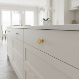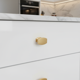 A finoman lekerekített forma modern és időtlen hatást kelt, miközben a matt óarany szín meleg, luxus akcentust ad a bútornak. A gomb kellemes fogású, masszív, tartós és alkalmas mindennapi használatra.