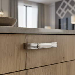 A FARO fogantyú ideális konyhákhoz, komódokhoz, fürdőszobabútorokhoz vagy modern, ipari, skandináv és minimalista stílusú enteriőrökbe. A markáns vizuális kontrasztnak köszönhetően dizájnos hangsúlyként működik, amely magára vonja a figyelmet. Lehetőség van azonos dizájnú gombbal is kiegészíteni, így egységes és ízlésesen összehangolt fogantyúkollekció alakítható ki a teljes térben.