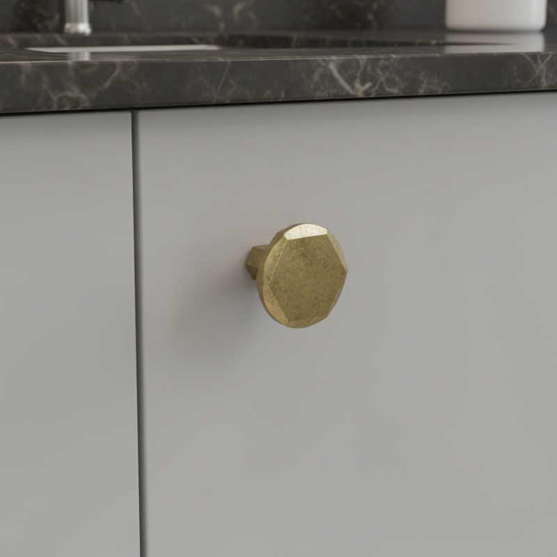 A LAMEGO gomb fogantyú antik sárgaréz kivitelben elegáns és stílusos részlet, amely tökéletesen kiegészíti a nagyobb, azonos dizájnú LAMEGO fogantyúkat. Finoman fazettált formája luxus és időtlen hatást kelt, így klasszikus, vintage és modern enteriőrökbe egyaránt illik.