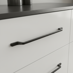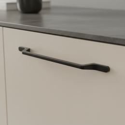 Az ELIDA fogantyú fekete matt kivitelben modern és kifejezetten elegáns kiegészítő a mai enteriőrökhöz. Hosszú, karcsú formája finoman megtört végekkel dinamikus és designos hatást kelt, miközben megőrzi a letisztult, minimalista jelleget. A matt fekete szín kifinomult megjelenést kölcsönöz a fogantyúnak, és vonzó kontrasztot teremt világos és sötét bútorokon egyaránt.