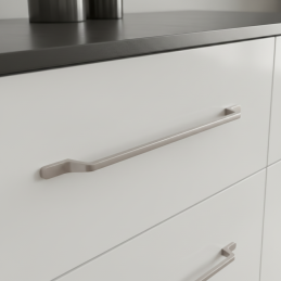 A rozsdamentes felületkezelés rendkívül népszerű tartóssága, egyszerű tisztíthatósága és természetes alkalmazkodóképessége miatt – a fától kezdve, a lamináton át egészen a lakkozott és matt felületekig. Az ELIDA fogantyú ideális konyhákba, fürdőszobákba, gardróbokba, komódokra és irodabútorokra is.