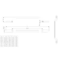 128 mm furattáv – teljes hossz 194 mm, szélesség 12,6 mm, magasság 26,5 ±1 mm