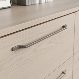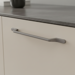 Az ELIDA fogantyú szürke szatén felülettel modern és elegáns kiegészítő a mai enteriőrökhöz. Hosszú, karcsú formája, finoman megtört végekkel dinamikus és dizájnos hatást kelt, miközben megőrzi a letisztult, minimalista jelleget. A szatén szürke szín visszafogott, technikai és időtálló, így könnyen kombinálható világos és sötét bútorokkal, fával és lakkozott felületekkel egyaránt.