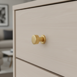 Az elegáns RIOX bútorgomb csiszolt arany kivitelben ideális választás modern és luxus hangulatú enteriőrökbe egyaránt. A minimalista hengeres forma és a finoman csiszolt felület kombinációja kifinomult, időtlen megjelenést kölcsönöz a bútornak.