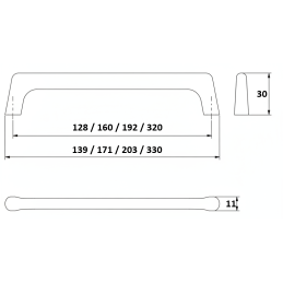 Furatköz (a szerelőnyílások közötti távolság): 128 mm / 160 mm / 192 mm / 320 mm