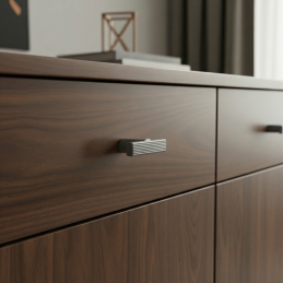 A modern LIZA bútorgomb elegáns grafit kivitelben stílusos kiegészítője lehet konyhabútoroknak, szekrényeknek, komódoknak vagy gardróboknak. A minimalista dizájn finom barázdáltsággal a felső részen modern megjelenést és kényelmes fogást biztosít.