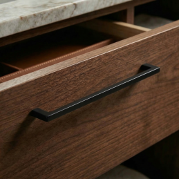 A ZARA modern bútorgomb elegáns matt fekete kivitelben ideális választás a mai enteriőrökhöz. A minimalista dizájn éles vonalakkal és vékony profillal tiszta, modern megjelenést kölcsönöz a bútornak, amely különösen jól illik modern, ipari vagy skandináv enteriőrökbe.