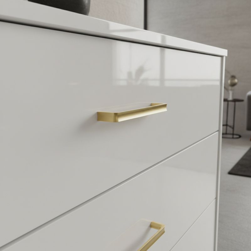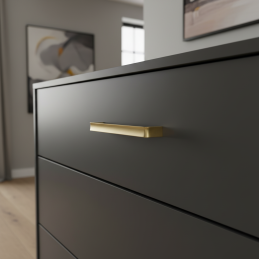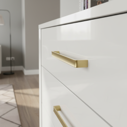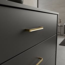 A SVOOP fogantyú arany matt felülettel ideális megoldás a modern enteriőrökbe, ahol a letisztult vonal, az időtlen esztétika és a luxus finom érintése találkozik. A minimalista, ergonomikusan formázott profil visszafogott, mégis nagyon stílusos – exkluzív megjelenést kölcsönöz a konyhabútoroknak, komódoknak, gardróboknak vagy fürdőszobabútoroknak.