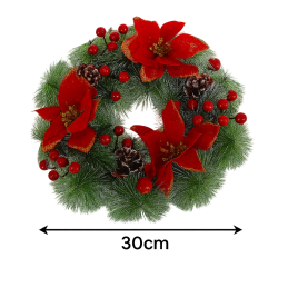 Azonnali karácsonyi hangulat – a hatás már néhány másodperc alatt érezhető. 30 cm átmérőjével a koszorú már a bejárattól jól látható.