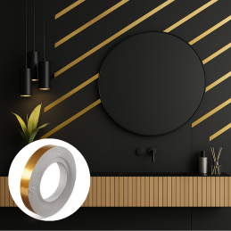 Önragasztó dekorációs szalagunk elegáns arany, fényes színben minden helyiségnek luxust és egyediséget kölcsönöz. 20 mm szélességének és 50 méter hosszának köszönhetően ideális számos felhasználási területre – a bútorok részleteinek kiemelésétől az otthoni vagy irodai eredeti design akcentusokig.