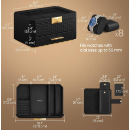 Felső szint: 8 rekesz minden méretű órához, amelyek biztonságosan tárolhatók és egyben üvegfedélen keresztül megtekinthetők.