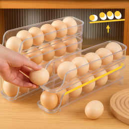 A tojások automatikusan előregurulnak, amikor egyet kivesz – így mindig könnyen hozzáférhet, anélkül, hogy csomagolást kellene nyitni vagy tojásokat áthelyezni.
