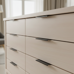Elegáns, minimalista fogantyú, amelyet ajtók vagy fiókok felső élére való szerelésre terveztek. Fekete, csiszolt kivitelben modern, időtlen hatást kelt, és tökéletesen illeszkedik olyan enteriőrökbe, ahol a letisztult design és az egyenes vonalak dominálnak.