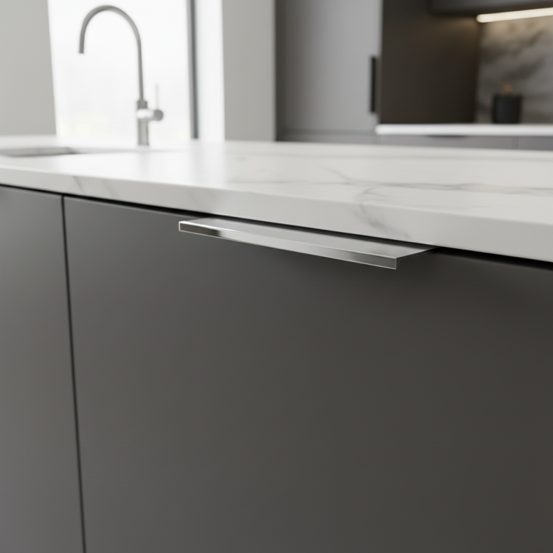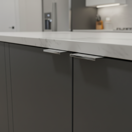 Kiváló minőségű fémből készült, tartós matt felülettel, amely kellemes tapintású és ellenáll a karcolásoknak. A vékony, visszafogott profil modern hatást kelt, és tökéletesen illeszkedik a konyhába, fürdőszobabútorhoz vagy nappali összeállításokhoz.