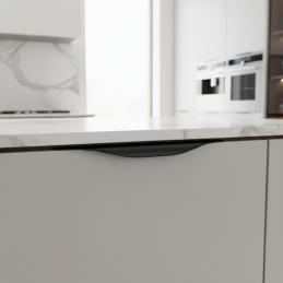 Elegáns marható fogantyú LUTRA fekete matt kivitelben modern és praktikus megoldás minden bútortípushoz. Közvetlenül az ajtó vagy a fiók élébe szerelhető, így minimalista és letisztult megjelenést biztosít kiálló elemek nélkül. A fogantyú kiváló minőségű alumíniumból készült, finoman csiszolt felülettel.