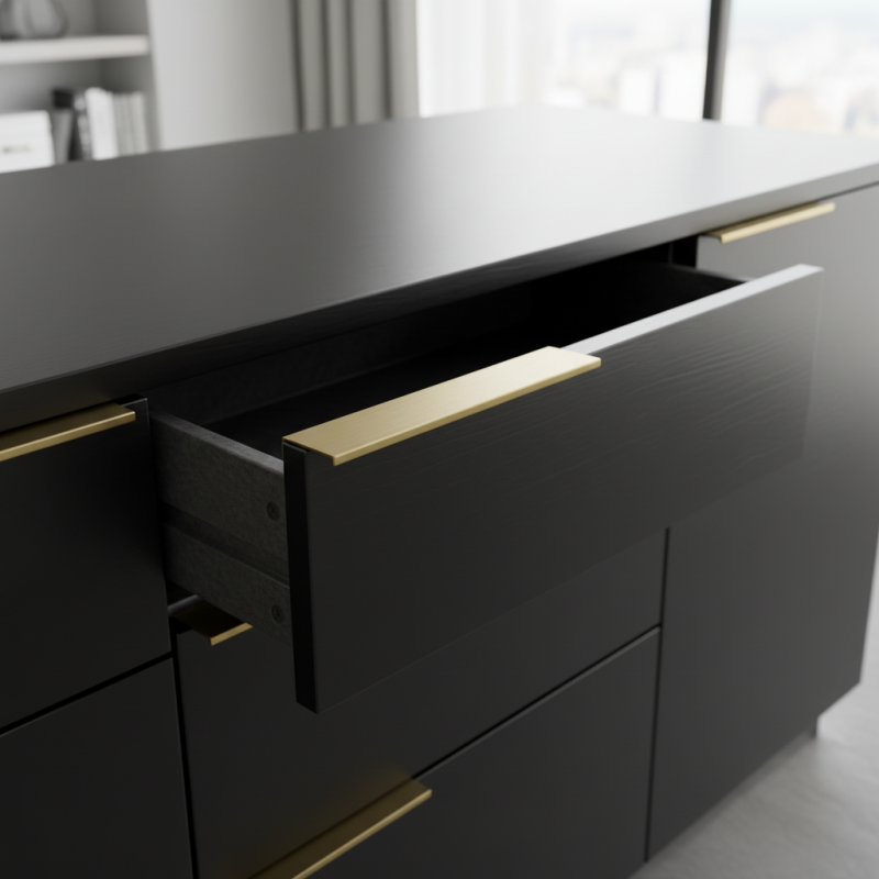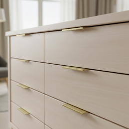 A modern, minimalista CANSAS fogantyú ajtók vagy fiókok élére szerelhető. Az elegáns, csiszolt arany felület luxus megjelenést kölcsönöz a bútornak, ugyanakkor visszafogott és időtlen hatást kelt. Ideális választás modern konyhabútorokhoz, gardróbokhoz, fürdőszobaszekrényekhez vagy design bútorokhoz.