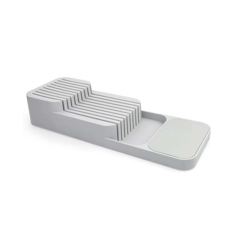 Speciális hornyainak köszönhetően többféle méretű kés elhelyezését teszi lehetővé. Modern kialakítása és kompakt méretei biztosítják, hogy a tartó nem foglal feleslegesen sok helyet, és a legtöbb szabványos konyhafiókba illeszkedik.