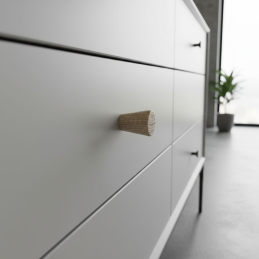 Egyszerű és elegáns, tölgyfából készült gomb, amely bármilyen belső térbe illik. Csavarokat tartalmaz