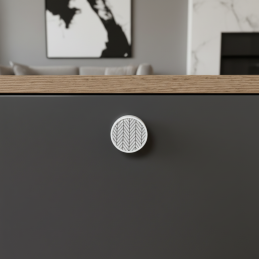 Fa fogantyú ARSIA matt fehér kivitelben, minimalista fehér jegenyefenyő motívummal, ideális kiegészítő modern, skandináv és természetes hangulatú enteriőrökbe. Tömör bükkfából készült és tiszta fehérre lakkozott, elegáns, harmonikus hatást kelt, és finom, természetes akcentust ad a bútornak.