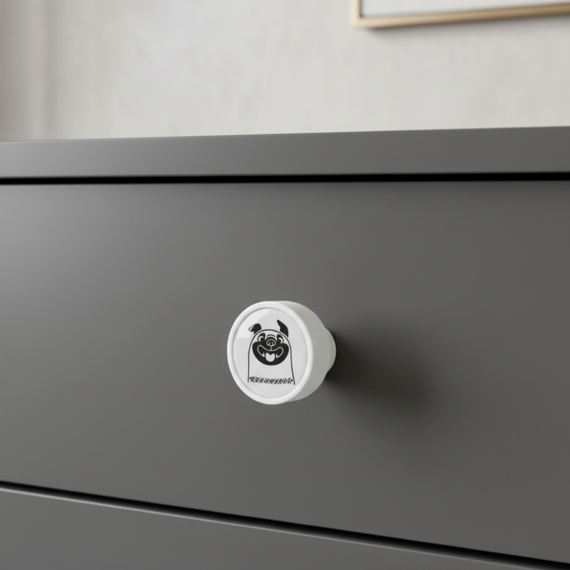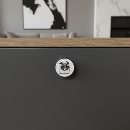 Fa fogantyú ARSIA vidám bulldog motívummal, fehér kivitelben, ideális kiegészítő gyerekszobákba, kutyabarátoknak vagy olyan enteriőrökbe, amelyek egy kis játékosságot igényelnek. Tömör bükkfából készült, sima fehérre lakkozva, hangsúlyos fekete-fehér kutyaillusztrációval díszítve, különleges és szimpatikus karaktert kölcsönöz a bútornak.