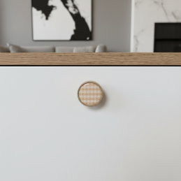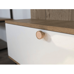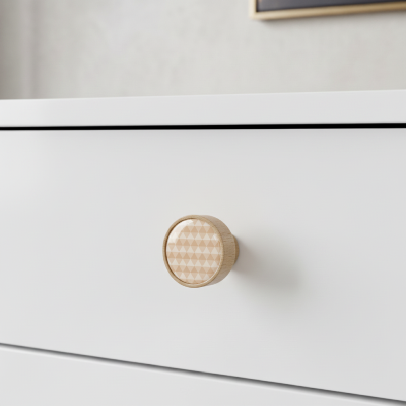 Fa fogantyú ARSIA természetes bükk kivitelben, narancssárga háromszögekkel díszítve, ideális kiegészítő azok számára, akik játékosságot, színt és modern geometrikus dizájnt szeretnének vinni a belső térbe. Tömör bükkfából készült és lakkozott a nagyobb tartósság érdekében, ötvözi a természetes anyagot és a friss dekorációt, amely gyönyörűen mutat gyerekbútorokon, modern komódokon vagy kreatív összeállításokon.