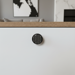 A ARSIA fa fogantyú fekete fenyő motívummal modern, minimalista és egyben természetes hangulatot kölcsönöz a belső térnek. Tömör bükkfából készült, lakkozott a magas tartósság érdekében, elegáns grafikus faág mintával díszítve, tökéletesen illeszkedik a mai enteriőrökbe, és markáns dizájn akcentust ad a bútornak.