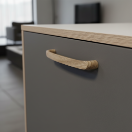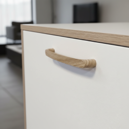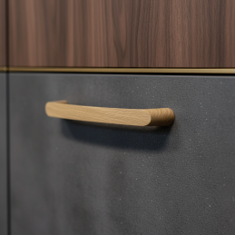 A CALCATA fa fogantyú natúr tölgy kivitelben elegáns kiegészítője a bútornak, amely ötvözi a modern dizájnt a tömör fa autentikus szépségével. Formája finoman lekerekített és ergonomikus, ami kellemes és kényelmes fogást biztosít a mindennapi használat során. A tölgyfa természetes erezete melegséget, harmóniát és időtlen megjelenést kölcsönöz a belső térnek.
