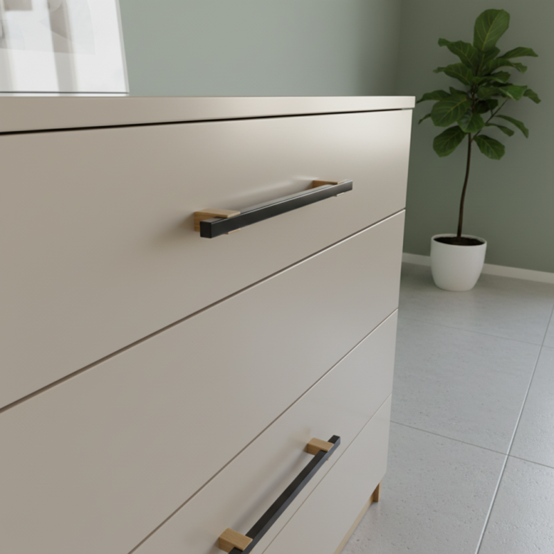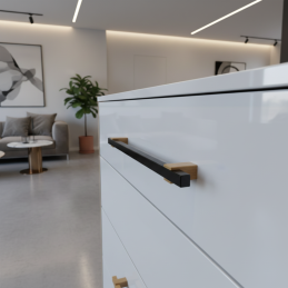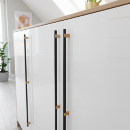 Természetes fából készült, lakkozott kivitelű fogantyú. Kombinálható ugyanilyen kialakítású kilincsekkel is.