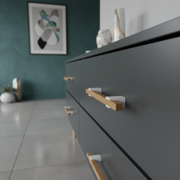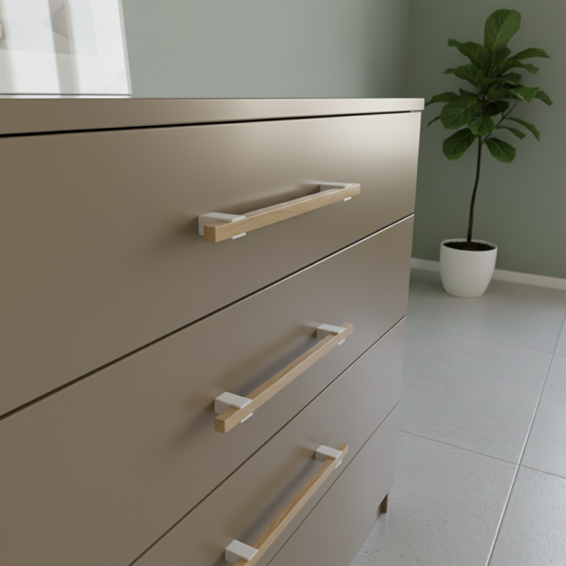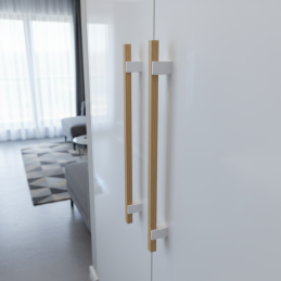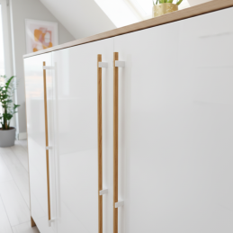 A LEO fa fogantyú természetes bükkfából és fehér matt fa végekkel rendkívül modern és otthonos hatást kelt. Minimalista formájának és természetes anyagainak köszönhetően ideális választás skandináv, gyerekszobai vagy modern enteriőrbe.