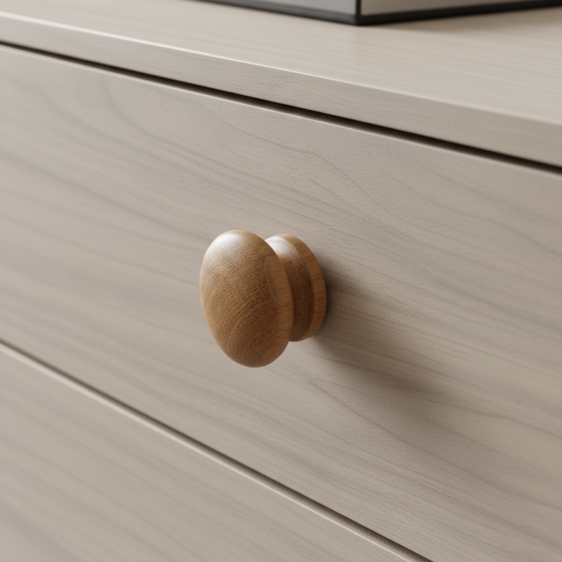 Masszív bútorgomb MASSIVE gomb kiváló minőségű tölgyfából készült, időtálló és természetes kiegészítő, amely meleg és autentikus karaktert kölcsönöz a bútornak. Klasszikus, lekerekített formájának köszönhetően kiválóan illik rusztikus, vidéki és modern enteriőrökbe is, ahol hangsúlyt fektetnek a természetes anyagokra.