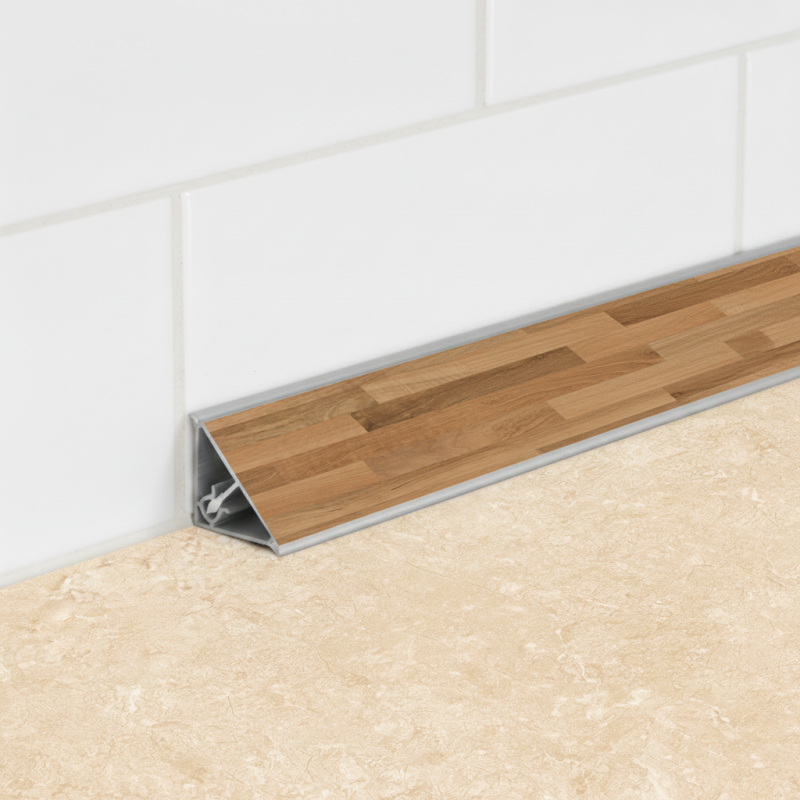 Két részből áll – az alsó rész csavarozható vagy ragasztható a munkalapra, a felső rész pedig rápattintható az alsóra. Így stabil, pontos és harmonikus lezárás jön létre, ugyanabban a dekorban, mint a munkalap.