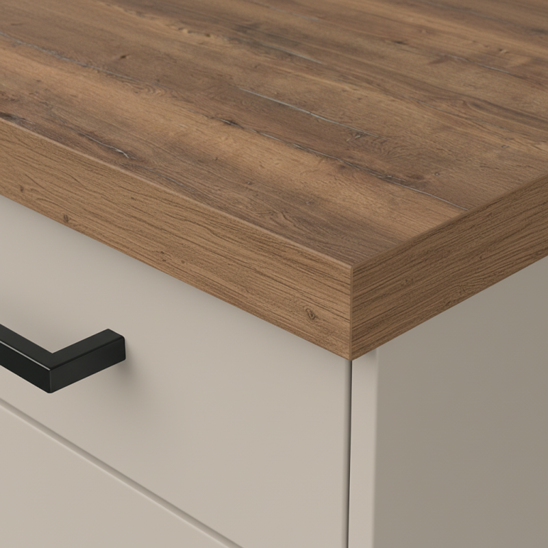 🪵 Egyenes ABS élzárás – esztétikus megjelenés, magasabb védelem a nedvességgel szemben.