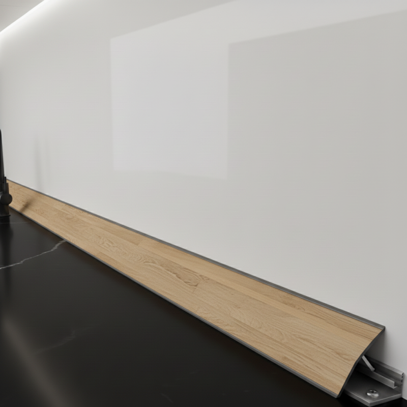 Két részből áll – az alsó rész csavarozható vagy ragasztható a munkalapra, a felső rész pedig rápattintható az alsóra. Ennek köszönhetően egységes, esztétikus és stabil lezárást hoz létre, ugyanabban a dekorban, mint a munkalap.