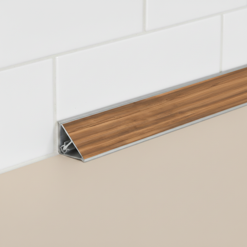 Két részből áll – az alsó rész csavarozható vagy ragasztható a munkalaphoz, a felső rész pedig ezután rápattintható az alsóra. Így stabil, pontos és harmonikus lezárás jön létre, ugyanabban a dekorban, mint a munkalap.