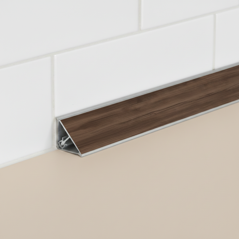 Két részből áll – az alsó rész csavarozható vagy ragasztható a munkalapra, a felső pedig rápattintható az alsóra. Így stabil, pontos és vizuálisan egységes lezárás jön létre, ugyanabban a dekorban, mint a munkalap.