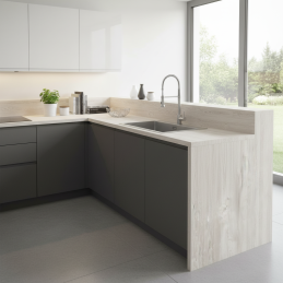 Az EGGER által gyártott munkalapokat magas minőség, kiváló kialakítás és hosszú élettartam jellemzi. A nem nedvszívó anyag és összetétel lehetővé teszi a könnyű tisztítást, és növeli a konyhai munkahely higiéniai komfortját.