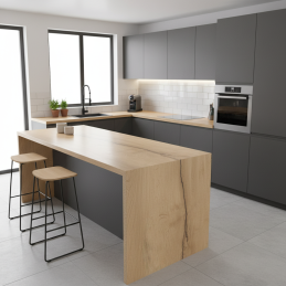 Az EGGER által gyártott munkalapokat magas minőség, kiváló kialakítás és hosszú élettartam jellemzi. A nem nedvszívó anyag és összetétel lehetővé teszi a könnyű tisztítást, és növeli a konyhai munkahely higiéniai komfortját.