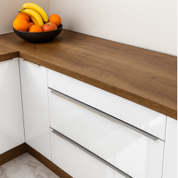 Az EGGER által gyártott munkalapokat magas minőség, kiváló kialakítás és hosszú élettartam jellemzi. A nem nedvszívó anyag és összetétel lehetővé teszi a könnyű tisztítást, és növeli a konyhai munkahely higiéniai komfortját.