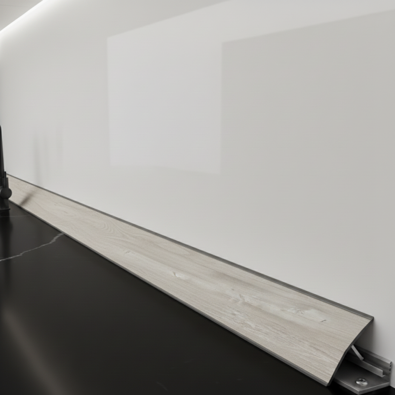 Két részből áll – az alsó rész csavarozható vagy ragasztható a lapra, a felső pedig rápattintható az alsóra, így tiszta és esztétikus lezárást hoz létre ugyanabban a dekorban, mint a munkalap.