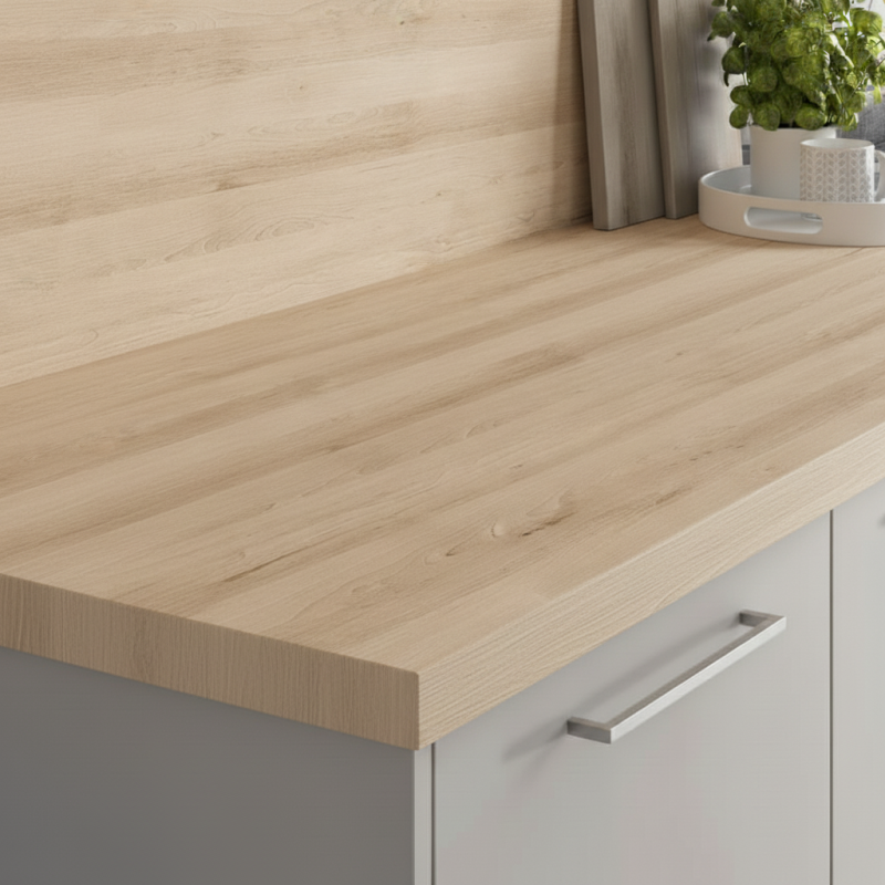 A természetes és meleg KRONOSPAN munkalap az Artisan bükk (K013 SU) dekorral a tömör bükkfa autentikus megjelenését hozza el a belső térbe, finom színátmenetekkel és élethű erezettel. Ez a dekor azok számára ideális, akik otthonosságot, természetességet és kézműves jelleget szeretnének vinni a térbe.