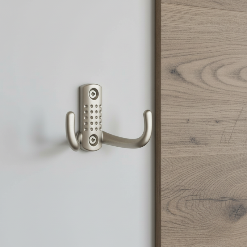 Modern bútorakasztó két praktikus kampóval, ideális mindennapi ruhák vagy kiegészítők tárolására. A szatén nikkel felület finom, elegáns megjelenést kölcsönöz, és remekül illik modern és klasszikus bútorokhoz is.