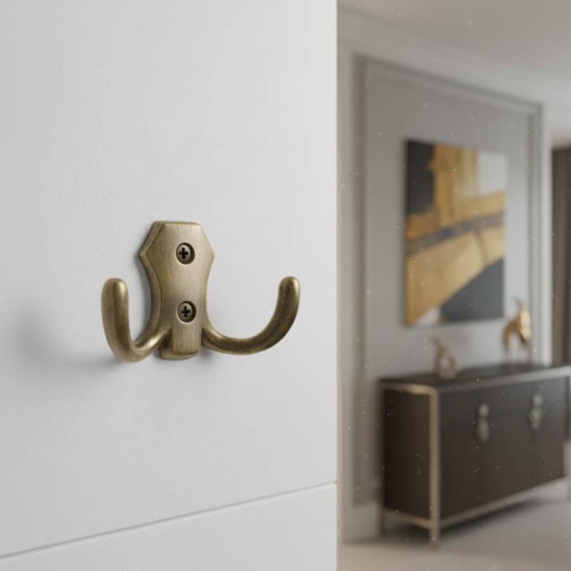 Bútor fém fali akasztó elülső rögzítéssel. Kombinálható más méretű, azonos kialakítású akasztókkal.