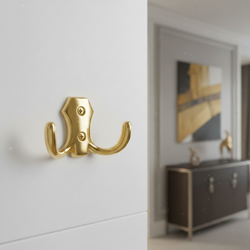 Bútor fém fali akasztó elülső rögzítéssel. Kombinálható más méretű, azonos kialakítású akasztókkal.