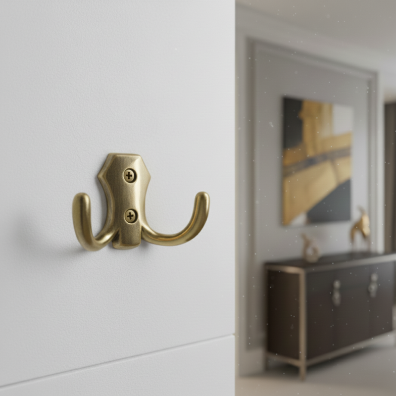 Bútor fém fali akasztó elülső rögzítéssel. Kombinálható más méretű, azonos kialakítású akasztókkal.
