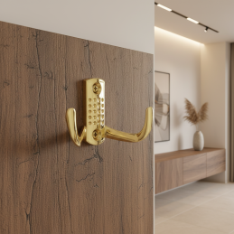 Luxus minőségű bútorakasztó két kampóval, amely a fényes arany felületkezelésnek köszönhetően feltűnő, modern megjelenést kölcsönöz, és prémium megjelenést ad a bútornak. Ideális elegáns enteriőrökbe, gardróbokba és reprezentatív helyiségekbe.