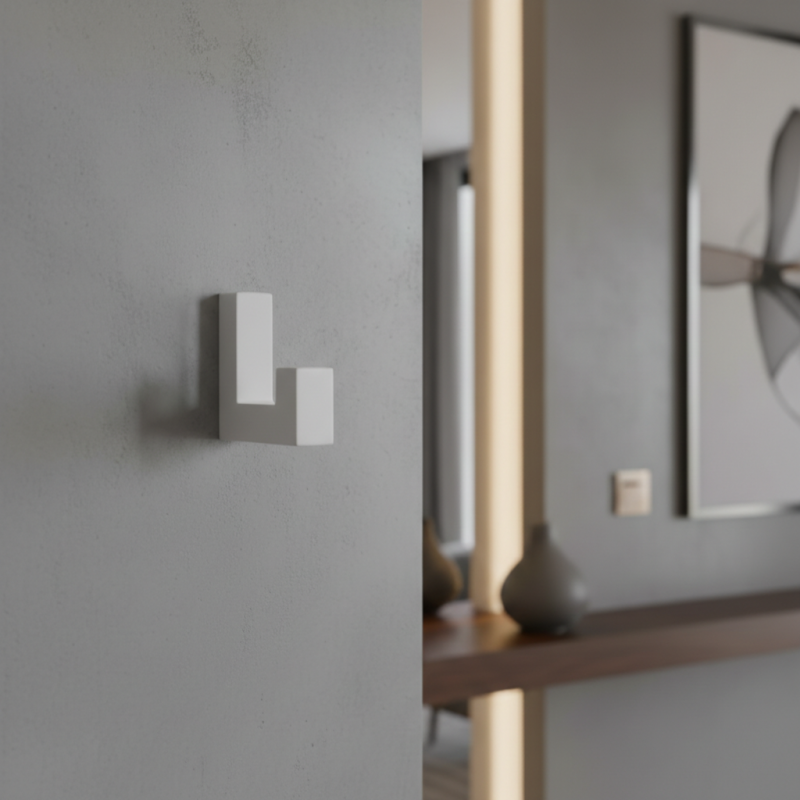 Elegáns és praktikus akasztó modern kialakításban, elölről párnára szerelhető. A felszerelés egyszerű - az alátétet dübelekkel és csavarokkal (tartozék) rögzítjük a falhoz, majd az akasztót ráillesztjük, és alulról egy csavarral rögzítjük.