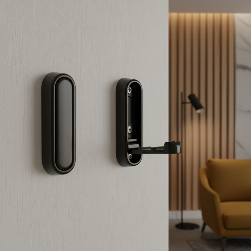 Egyszerű, elölről szerelhető fogas, 74 mm magas és 24 mm széles. A rögzítőcsavarok a csomagban találhatók. Az akasztó egyszerűen, nyomásra kifordul. Az akasztó felületre szerelhető, és nem kell a bútorba vagy anyagba marni.