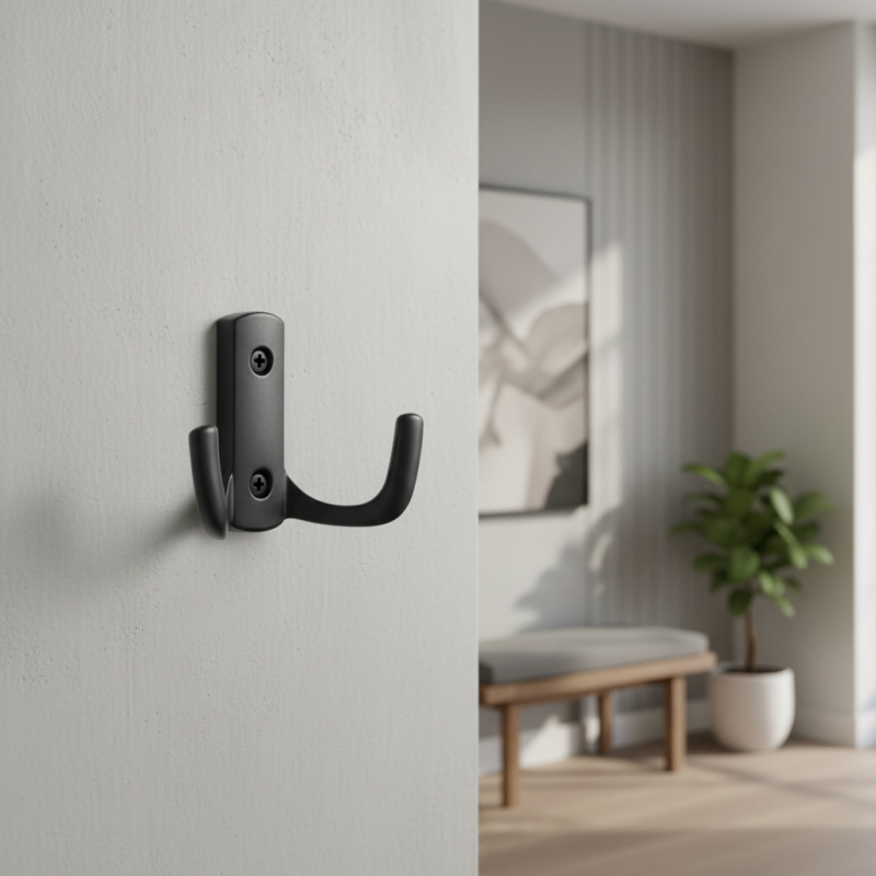 A dupla kampó elegendő helyet biztosít ruhák, törölközők, táskák vagy kisebb kiegészítők felakasztására, miközben letisztult formájának köszönhetően gyakorlatilag bárhol megállja a helyét – a fürdőszobában, előszobában, konyhában, irodában vagy a gyerekszobában.