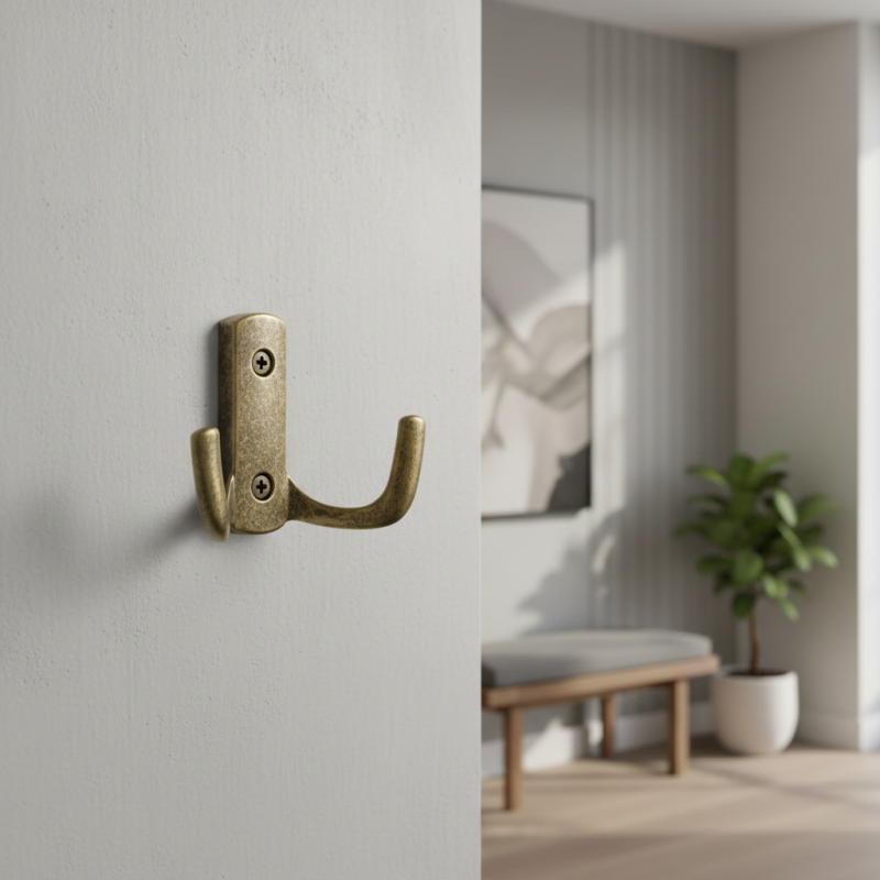 Kompakt kialakítása dupla akasztóval praktikus ruhák, törölközők vagy kiegészítők felakasztását teszi lehetővé kisebb helyeken is.